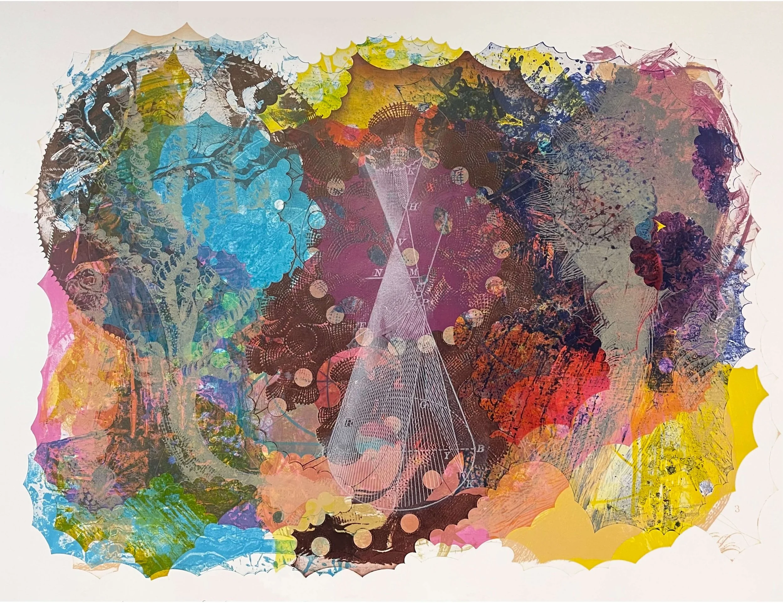 At the present, I am fascinated with the print press and the overlaying of colour. I experiment with simple materials such as paper and ink. My choice of materials are dictated not only by their physical properties, but also by their symbolic associations. I do enjoy the idea that certain materials are more profound than words, even while perceiving that words can reinforce visual and conceptual associations.In the end, I guess I feel one thing is certain... my wanting to make printed images.